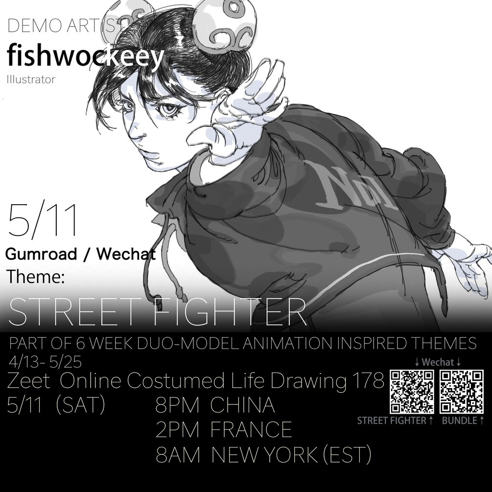 Live recording of the 2024/5/11 【STREET FIGHTER】themed life drawing with Model + Demo, recording provided after the live.